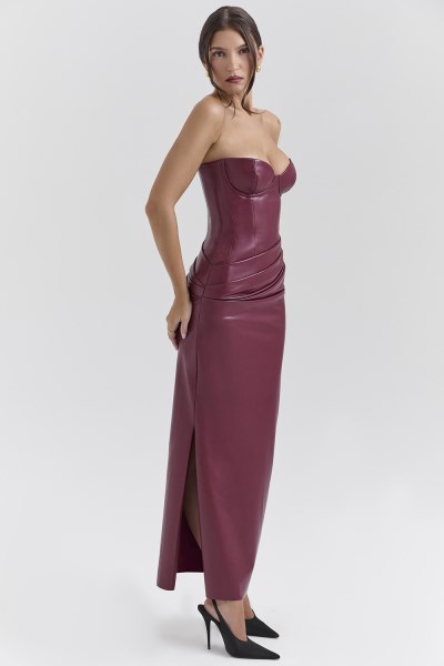 $89.70FREE DELIVERY ON YOUR ORDER Description Unleash your inner siren with ‘Juliana’, a seductive body-hugging long midi dress that redefines allure. Crafted from luxurious stretch vegan leather, this strapless design features a cupped bodice that perfectly sculpts your curves, ensuring all eyes are on you. The skirt gracefully drapes from the…