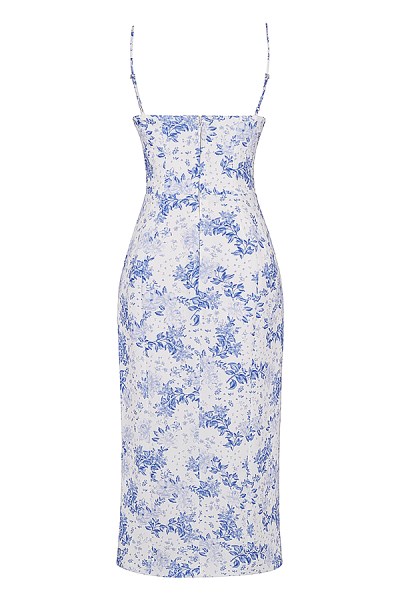 What feels more like spring than a pretty floral dress. Cut from our lightweight crepe that hangs beautifully, 'Charlotte' has a blue print that's even more beautiful close up with a flattering sweetheart neckline, edged in delicate lace and the bodice is fitted with our signature corsetry boning for a tiny, cinched waist.