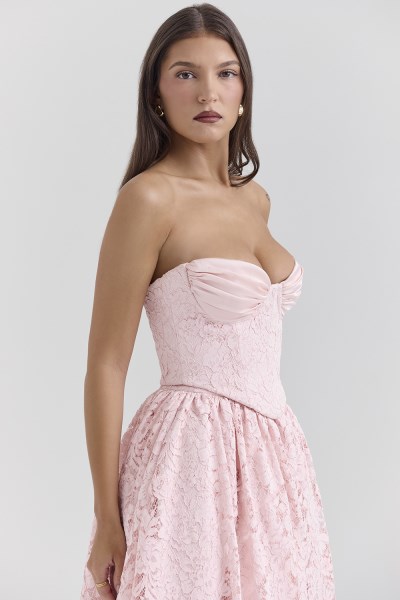 Dreamy, romantic, and utterly enchanting; ‘Duchess’ is one of the favourite sets of our 'The Art of Dressing Up' collection. Duchess comprises corset top, full skirt and matching bolero. With a beautifully structured corset top featuring pleated cups, it promises the perfect blend of support and allure, making you feel as magical as you look. The voluminous skirt flares out gracefully, adding a whimsical touch that’s perfect for twirling under the stars. Crafted from delicate lace, each layer invites movement, creating a spin-worthy silhouette that captures attention. Completing the look is a matching bolero jacket, adding an elegant layer that enhances the princess vibe. If you’re ready to step into a world of enchantment and charm, ‘Duchess’ is your perfect match for unforgettable moments. Despite the lace back to the corset, it zips to the side for easy on and we love her teamed with dainty ankle strap heels and a pochette bag. Team the versatile bolero with jeans and heels when a less formal look is needed. For the perfect fit, our A-C cup girls will want to go for our ‘Regular Cup’ option, and our ‘Bigger Cup’ will best suit our D-E cup girls. WHERE TO WEAR: