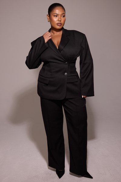 'Hudson' blazer and black stilettos. UNDERWEAR SOLUTION:We suggest a tonal thong or seamless briefs. Stretch Factor: Little Stretch Designed For House Of CB