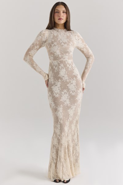 Isoline Peach Lace Maxi Dress