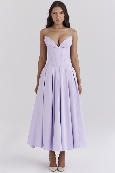 Lady Orchid Twill Strapless Tulle Midi Dress