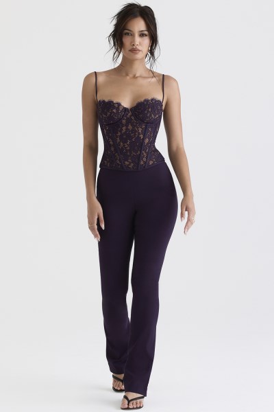 Clean lines and simple styling is what we love about our 'Laurel' trousers. Cut from our new high tension fabric for a sculpting fit, they sit flatteringly high on the waist and have fitted straight legs with a slight flare at the hem to sit perfectly over your highest heels. They have a zip to the left side for easy on and we love these paired with our 'Mila' corset in night shade and 'Lola' high heels in black.