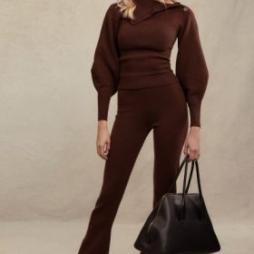 Our 'Nereida' trousers are knitted from a chocolate cashmere blend that feels utra luxurious and soft to the touch. They have a deep ribbed waistband and fit snug through the legs before falling to a subtly flared hem. The wool-mix cashmere blended fabric has a soft and 'non-picky' feel that's so vital when used for trousers They pull on for easy wear and we love these paired with our 'Adelita' sweater in chocolate for a cosy co-ord. We recommend folding our knitwear as it will stretch on a hanger.