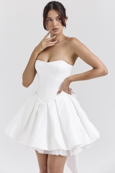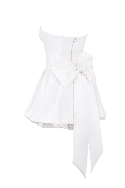Noele White Satin Strapless Bow Mini Gown