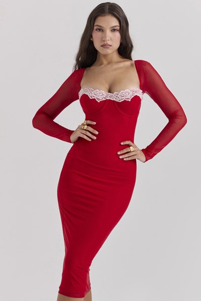 'Seraphina' is our effortlessly glam top seller and for great reasons. Cut from soft stretch mesh to beautifully hug your curves, 'Seraphina' has underwired cups and supportive internal boning to cinch the waist. This version comes in an ultra wearable scarlet red tone that's flattering for all skin tones.
