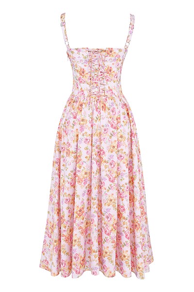 We're loving how the floral prints stand out this season for their beautiful colours and lifelike details. Decorated with pretty blooms, 'Tatiana' has a vintage feel and beautifully cut from stretch cotton. The sweetheart neckline features a shaped bust and fitted with our incredible corsetry boning to snatch the waist for an amazing silhouette. It has a lace up back for pretty detailing and buttoned through the front to wear as open and revealing for your desired fit. We love that this beautiful dress is fitted with pockets.