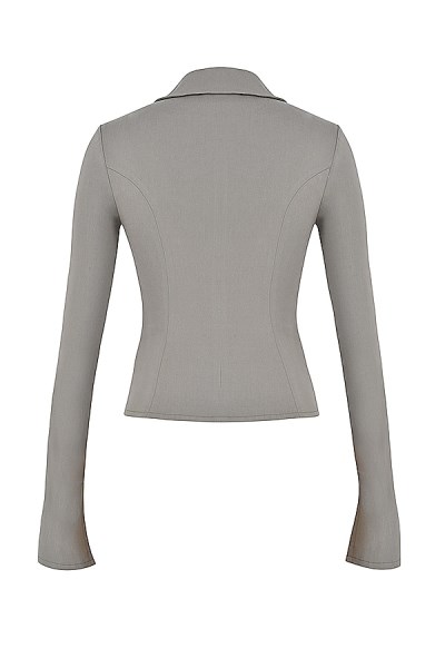'Zakira' is perfect for any occasion to dress up or dress down. Cut from our high tension fabric with generous stretch in a smokey hue that we're loving this season. It features a sexy plunge neckline with classic notch lapels in a fitted silhouette for a flattering tiny waist and the contouring seams accentuate the shape. The hook and eye detail to the front and split flared cuffs makes for easy on. Wear yours with your favourite jeans or style with our 'Laurel' trousers in smoke for an ultra chic vibe.