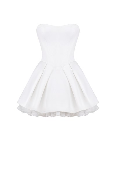 FREE DELIVERY ON YOUR ORDER Description A perfect choice for the modern bride, our 'Noele' gown is luxuriously made from lustrous Duchess Satin in classic white. The flattering strapless silhouette will perfectly showcase a delicate necklace and the bodice is fully corseted to flatter your shape. The feminine elegance continues…