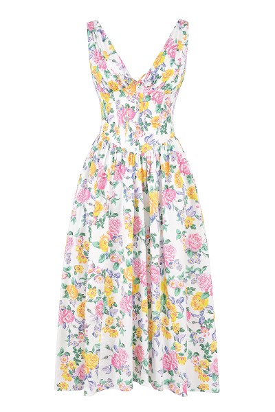 $71.70Description The vintage-inspired Italian rose print decorating our 'Elia' dress evokes blissful Italian escapes. Cut from a stretch cotton-rich fabric, it has a flowy tiered skirt and a corseted bodice. 'Elia' is ultra feminine and has a pretty neckline with underwired cups but the thing we love the most is…