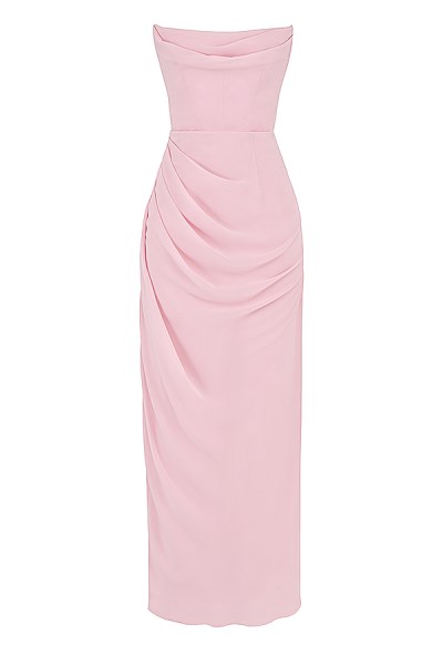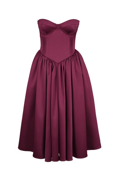 FREE DELIVERY ON YOUR ORDER Description Our 'Alora' midi dress is perfect  for any glamorous event. Cut from our lustrous duchess satin, it has a pleated strapless bodice that's fitted with internal boning to cinch the waist and a close fitting long pleated midi skirt for a striking silhouette. We…