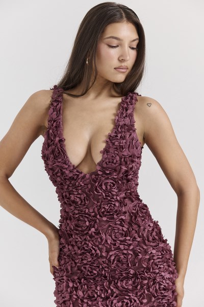 Carena Merlot Plunge Floral Appliqu?? Maxi Dress