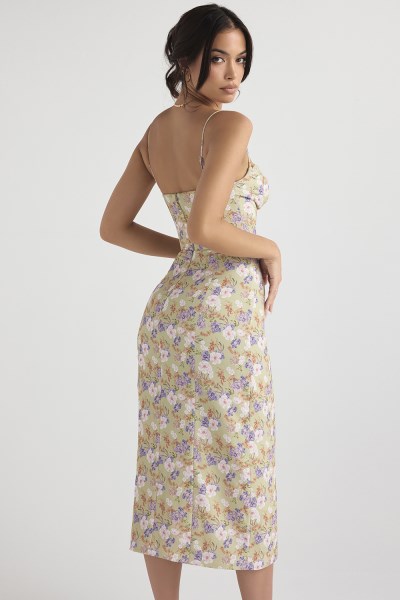 What feels more like summer than a pretty floral dress. Cut from our lightweight crepe that hangs beautifully, 'Charlotte' has a peony print that's even more beautiful close up. It has a flattering sweetheart neckline, edged in delicate lace and the bodice is fitted for a tiny, cinched waist. The shoulder straps adjust for the perfect fit and we love the daring side split to add a little sexy to the vintage style. It has a zip to the back for easy on and is fully lined for comfort. Wear yours with our 'Lucent' mules for champagne garden parties. The 'Regular' cup option suits cup size A-C whilst the 'Bigger' cup option suits cup size D-E.