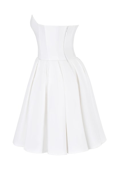 'Emmanuela' is beautifully constructed and this ultra feminine mini style is cut from soft peached twill. It has a strapless, corseted bodice to cinch your waist to highlight your figure and a perfectly pleated mini skirt. The tulle underskirt creates pretty volume and 'Emmanuela' is a favourite for sunny destinations. Accessorise with a delicate necklace and barely there heels.