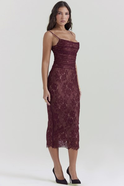 Gaia Claret Lace Midi Dress