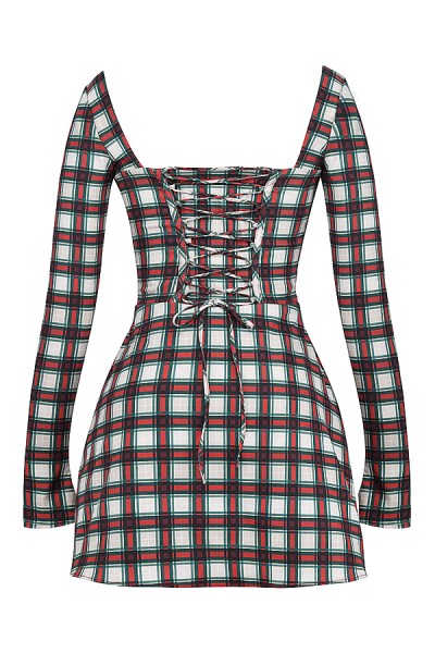 Our 'Malika' dress makes a statement in a traditional red and ivory tartan that radiates vintage glamour. It's cut from a gorgeous soft twill and has a gathered bust and romantic lace up back. The fully boned bodice cinches your waist and 'Malika' has long sleeves and a pretty a-line-shape. It zips to the side for easy on. Channel the preppy vibe with our 'Paris' heels in black to make an entrance at your festive events. The 'Regular Cup' option suits cup size A-C whilst the 'Bigger Cup' option suits cup size D-E. Taller girls, we heard you and this is available in two lengths, our regular mini length and 2 inches / 5cm longer. Regular length: Approx 86cm and Longer length: Approx 91cm.
